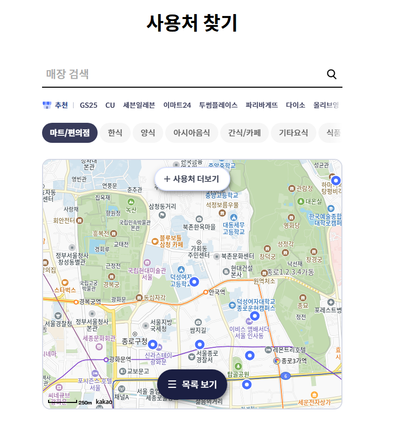 하단에 있는 링크를 통해 네이버 지도로 이동 후 사용처를 조회할 가게를 검색합니다.