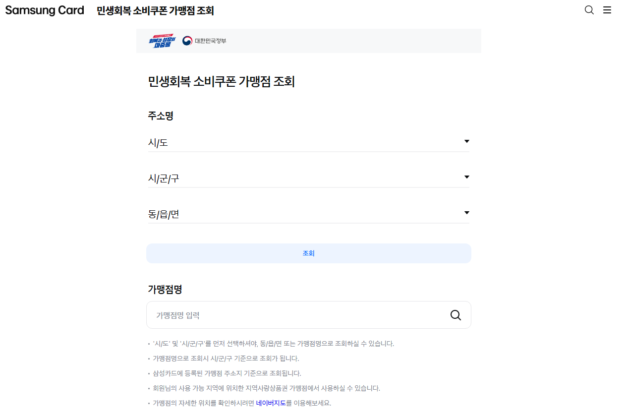 민생회복 소비쿠폰 사용처 조회 방법