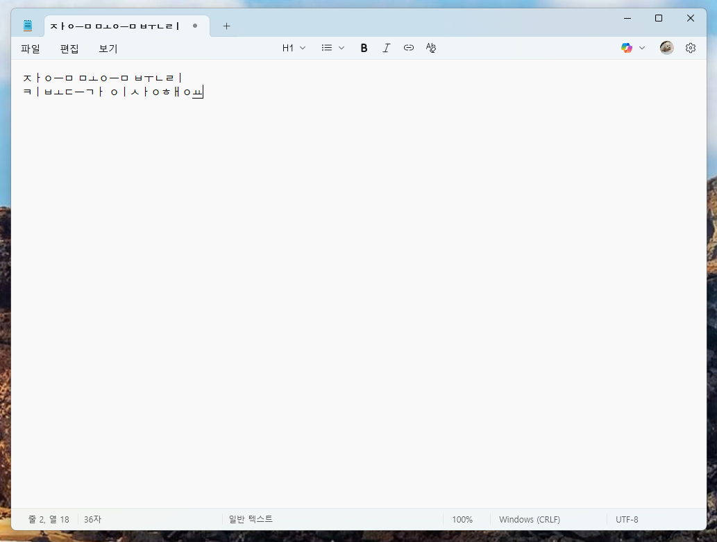 컴퓨터 자음 모음 분리 현상 해결 방법